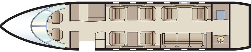 The Challenger 300 is a super midsize jet that fits up to ten passengers and goes beyond with luxury. You can stay up to date on your location with AirShow or keep in touch with others via satellite phone. Or just sit back in the plane's comfortable leather seats.