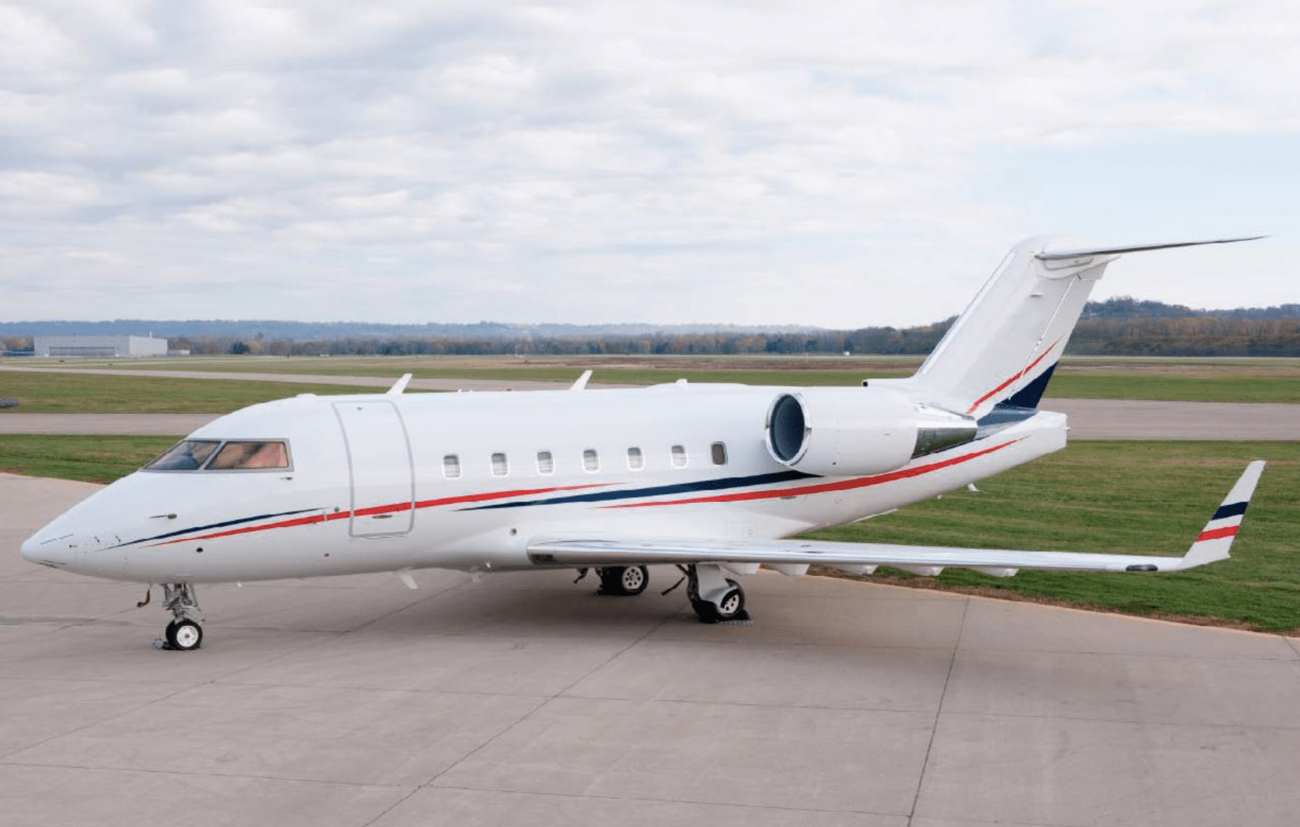 The Challenger 604 is part of Bombardier Aerospace's successful line of business jets. The jet has two General Electric CF34-3B engines, giving it enough thrust to go up to 539 mph.